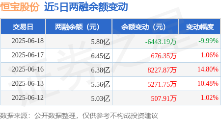 本站消息库东投资,6月18日,恒宝股份(002104)融资买入3.63亿元,融资偿还4.27亿元,融资净卖出6443.19万元,融资余额5.8亿元,近20个交易日中有12个交易日出现融资净买入。